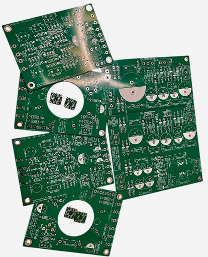 This PCB set consists of 1 power supply PCB, 2 driver PCBs, 3 SOIC-8 to DIP-8 adapter PCBs and 2 tube socket PCBs for the 6AS7 tube.