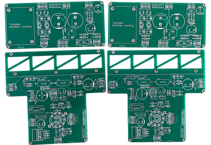 PCB's voor de bouw van een versterker zonder uitgangstrafo's (OTL). Het vermogen van deze versterker bij 8 Ohm luidsprekerimpedantie is 32 Watt, en bij 4 Ohm 50 Watt. Beide kanalen zijn gescheiden opgebouwd. De versterker kan daardoor ook als 2 mono-blokken gebouwd worden. De voorversterking wordt verzorgd door een dubbeltriode buisje (de ECC 88) die parallel geschakeld wordt. Deze schakeling is opgebouwd zonder enige vorm van tegenkoppeling. Hierdoor is het buizenkarakter goed bewaard gebleven. Verder zijn de kenmerken ruimtelijk, snel met natuurlijke details en een stevige dynamiek. De schakeling is ook minimalistisch opgebouwd. Dus makkelijk zelf te bouwen. De gloeispanning voor de ECC 88 wordt verzorgd door een Tentlabs module, die gemonteerd kan worden boven op de voedingsprintplaat. Je hebt voor elk kanaal 1 module nodig. De module is instelbaar en in staat om van een aangeboden 6,3 Vac een zeer stabiele 6,3 Vdc te maken. Hiermee wordt brom voorkomen in het voorversterkingstraject. Bijpassende voedingstrafo's zijn de VDV TS-2022-OTL-MAINS en kun je hier bestellen.