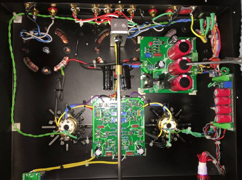 De afgebeelde eindbuizen zijn van het type Tung-Sol KT150, maar ook KT88- of KT120-buizen kunnen zonder herinstellen worden gebruikt. De gloeispanning werkt op 6,3 V wisselstroom, waardoor gelijkspanning niet nodig is.