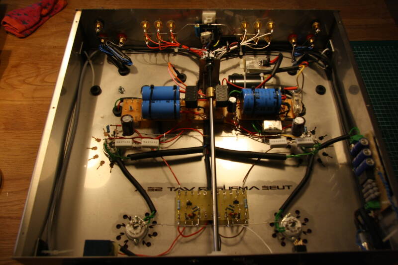 The power supply is stabilized at 335V, resulting in a B+ of approximately 326V after the Mec units. To meet the specifications of the Mec units, an additional 470µF capacitor was added (CLC). Thanks to this addition, the amplifier’s dynamics have noticeably improved. The power supply operates extremely quietly, partly due to the integrated noise suppression mechanism (C6, C7, R3, R4). In a previous project, switching pulses from the bridge rectifier caused interference. To prevent this, the current circuit has been proactively equipped with additional filtering. An added benefit is that the reproduction of sounds such as the 's' and 't' consonants is considerably smoother and less harsh.
